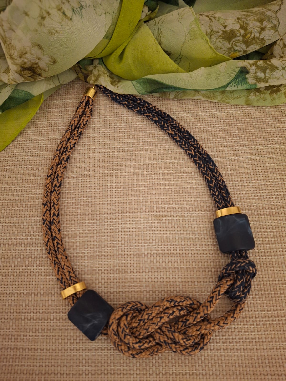 Feito com corda náutica de alta qualidade e acabamento dourado, o colar combina resistência e estilo, garantindo que você se destaque em qualquer ambiente. As pedras de resina adicionam um charme especial, tornando-o uma peça versátil que complementa tanto looks mais elaborados quanto produções do dia a dia.