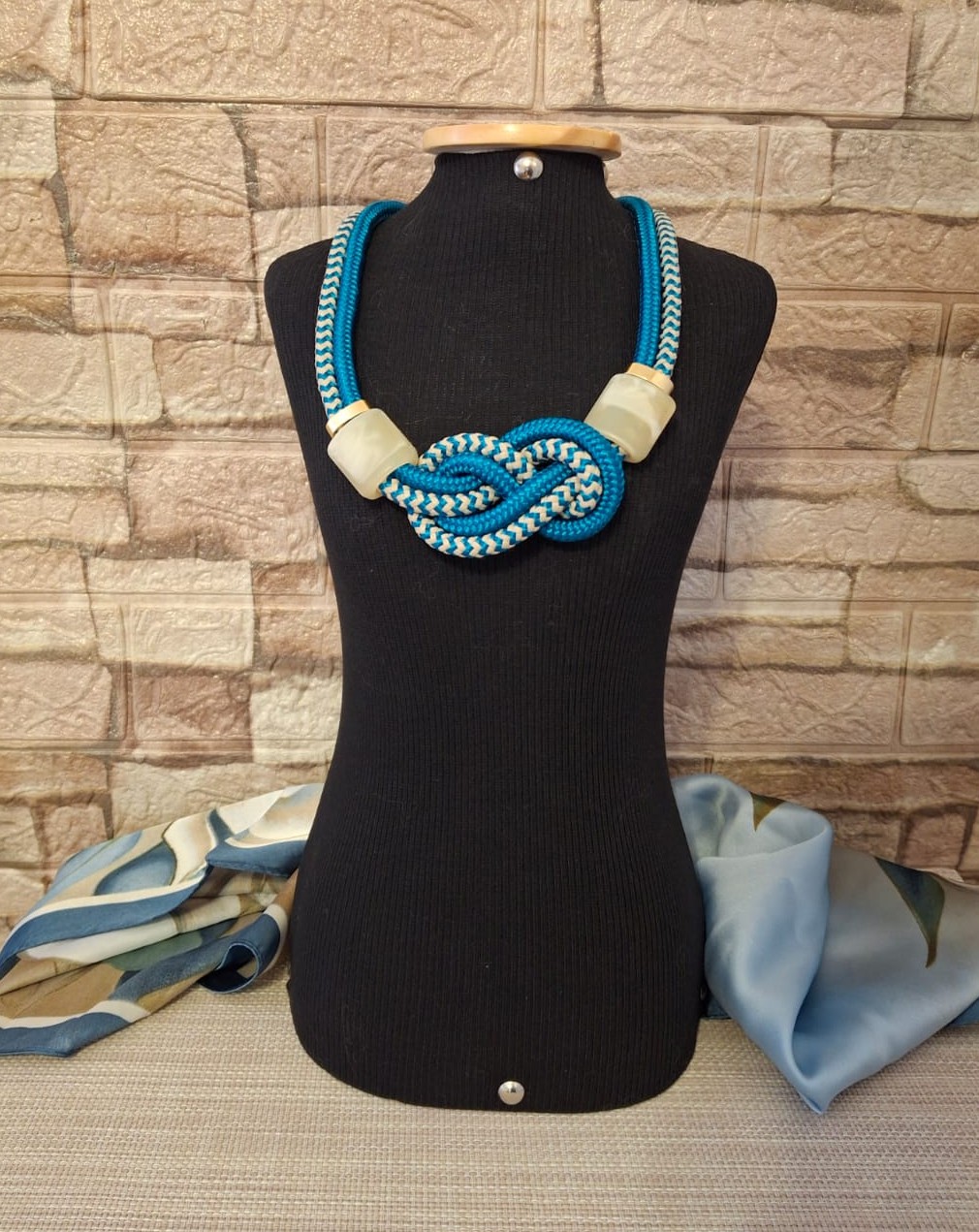 Feito com corda náutica de alta qualidade e acabamento dourado, o colar combina resistência e estilo, garantindo que você se destaque em qualquer ambiente. As pedras de resina adicionam um charme especial, tornando-o uma peça versátil que complementa tanto looks mais elaborados quanto produções do dia a dia.