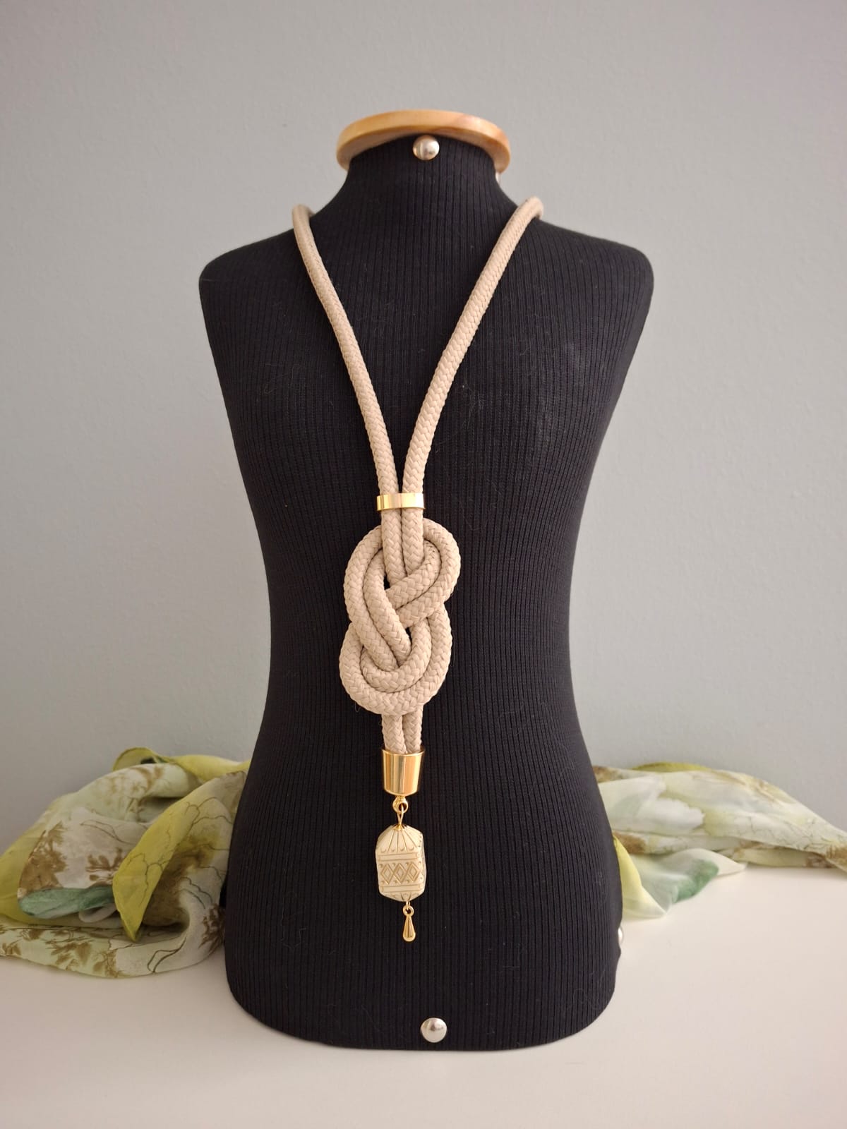Com um acabamento em metais dourados, o colar destaca-se pela sua estética chique e atemporal. A mistura de corda náutica e resina confere um toque único, tornando-o uma escolha ideal para quem aprecia estilo e sofisticação. Seu design moderno se adapta facilmente a diferentes looks, permitindo que você se sinta confiante e elegante em qualquer situação.