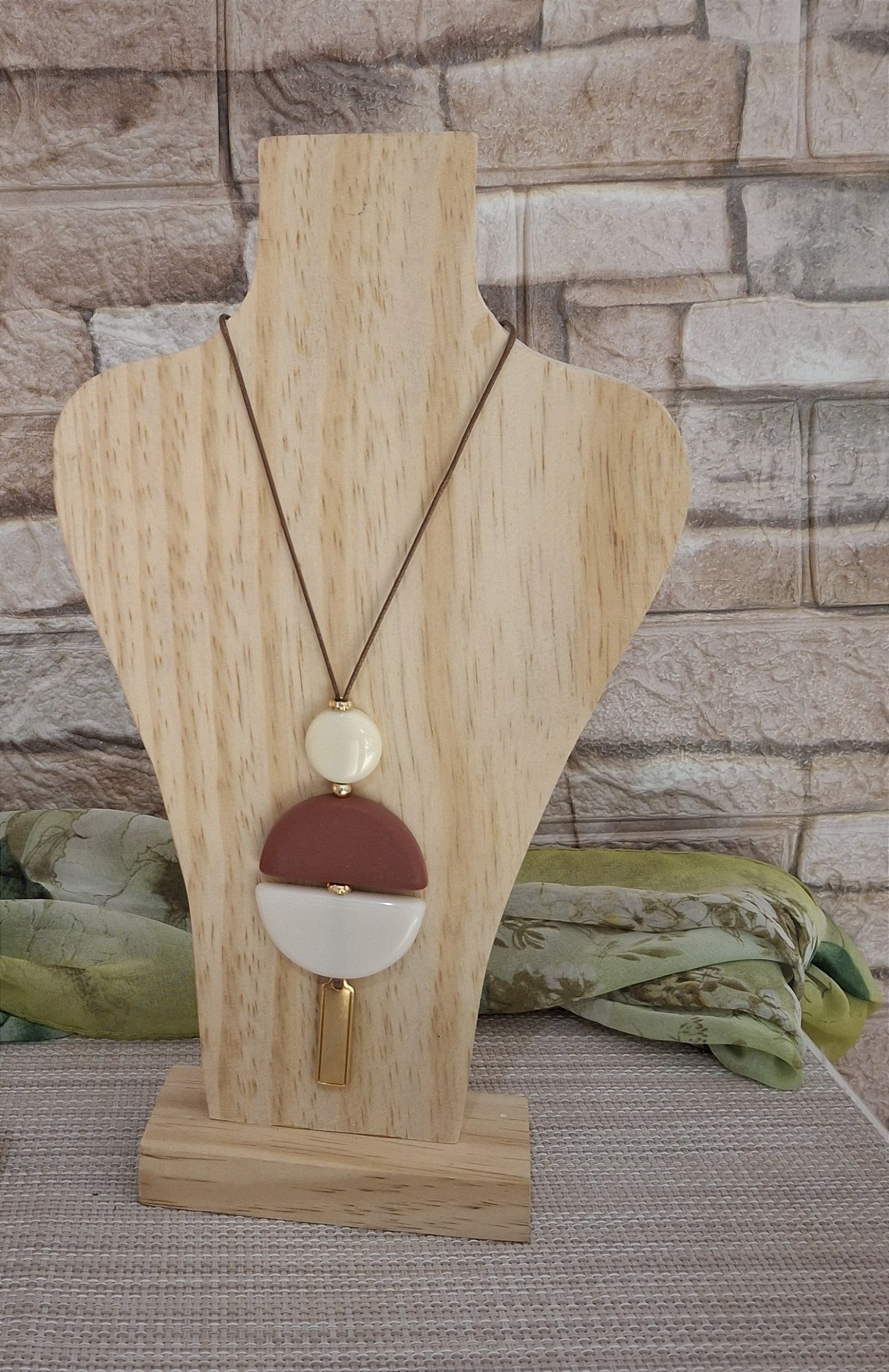 Colar artesanal de cordão e resina - peça unica