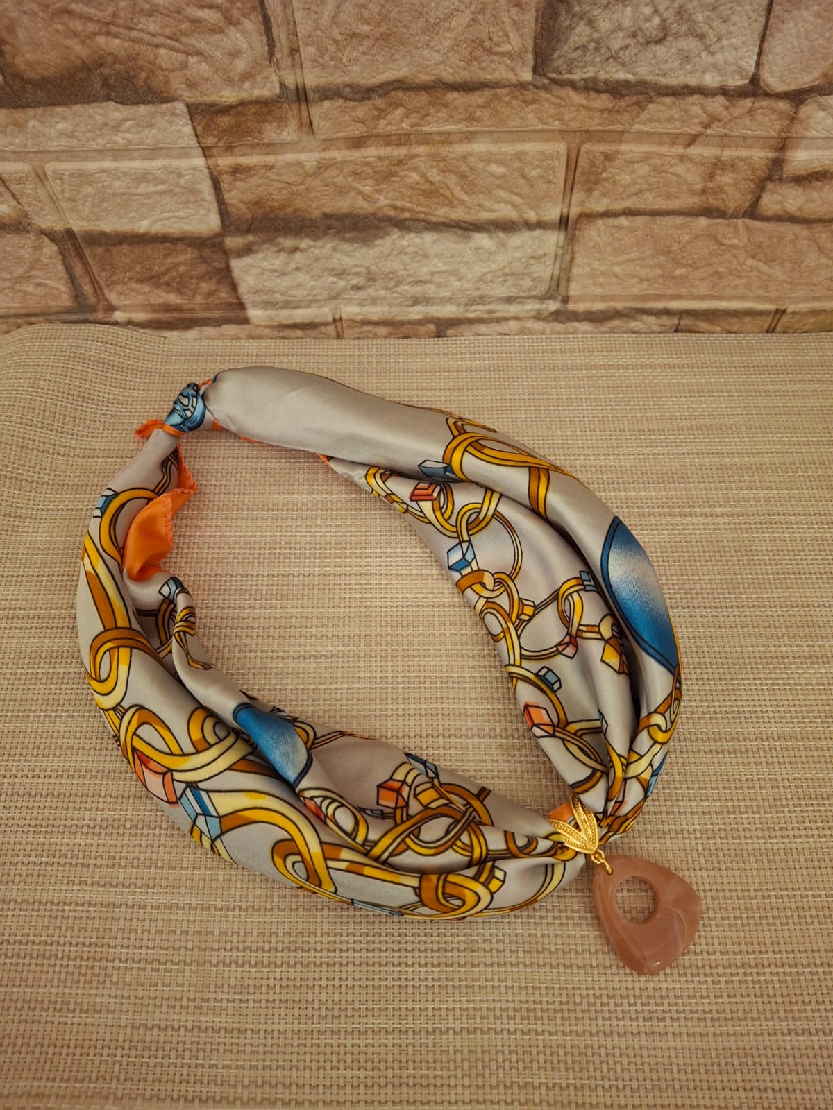 Os colares de lenço com pingente são o verdadeiro charme da estação! Unem elegância, conforto e aquele toque especial que transforma qualquer look.Aposte nessa tendência e aqueça seu visual com muito estilo!